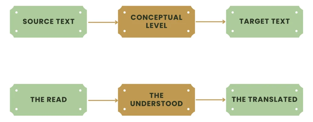 The task of deverbalizing the text aims to translate it mentally, that is, to provide it with a conceptual representation. This is a cognitive representation of a non linguistic nature, a preverbal representation. Deverbalization also involves disambiguating the semantic and conceptual content of the source text. It consists in stripping away the linguistic surface of the initial text.