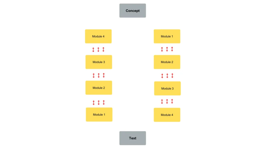 In this model, the transmission of information from one component to another within translational activity occurs in a strictly sequential manner. The processing of a particular type of information, whether visual, auditory, or phonological, must be completed before processing begins at the next level.